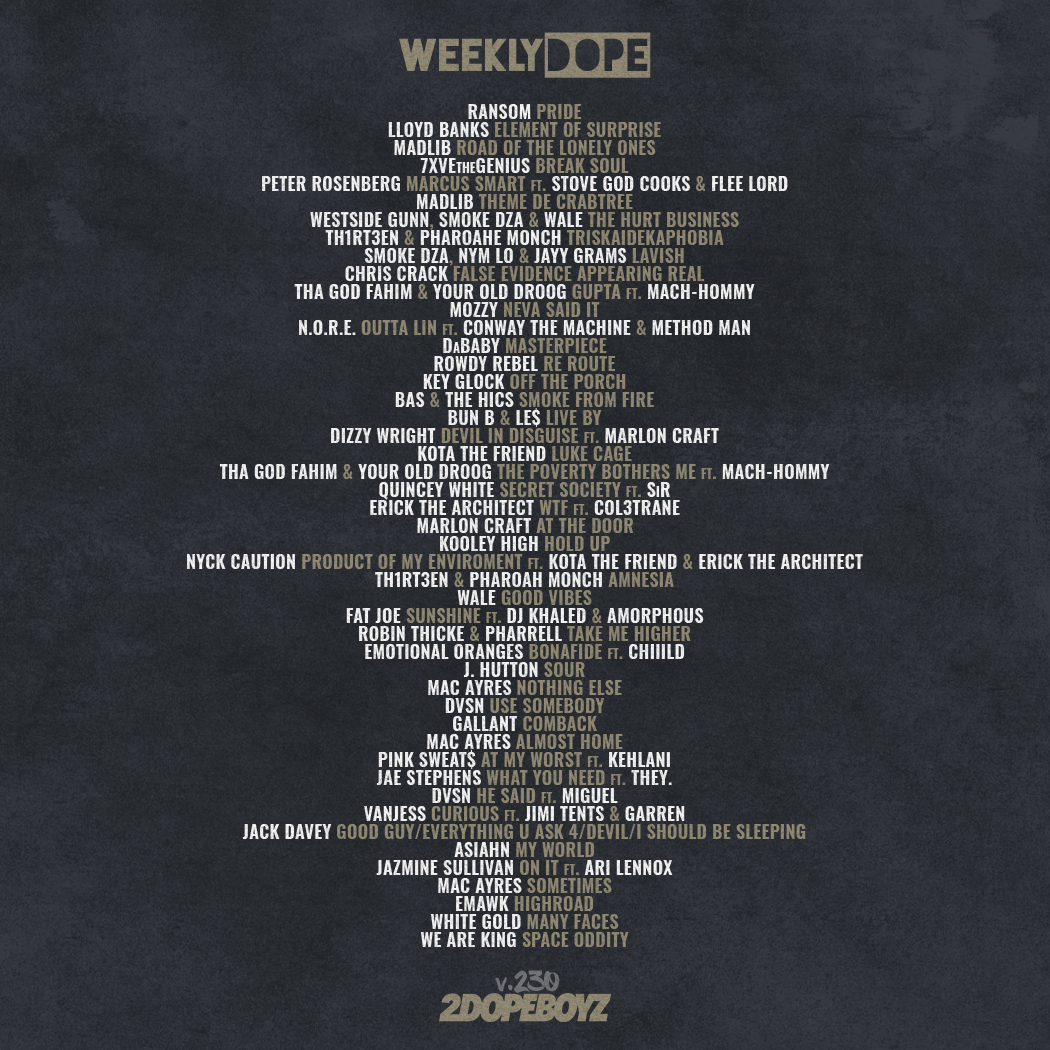 We’re back! After allowing the industry’s holiday slumber go down for a few weeks, we’re finally back catching you up on the best new music with the 230th installment of our Weekly Dope playlist.