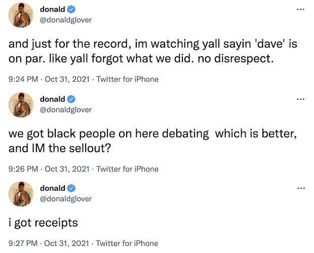Donald also fired off some (since-deleted) tweets about fellow FX show Dave, which has long been compared to his series.