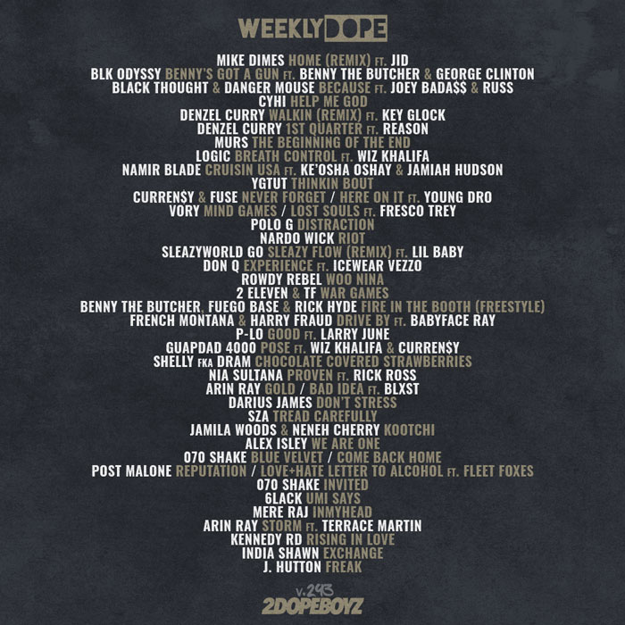 After taking last week off to handle some business (again), we’re right back at it catching you up on the best new music with the 293rd installment of our Weekly Dope playlist.