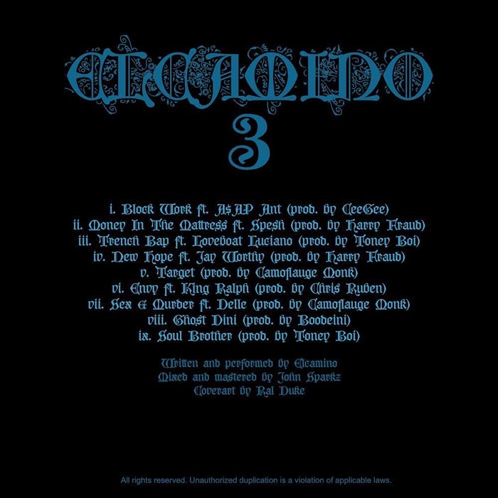 “Working with a producer like Harry Fraud, man, he’s working with me, playing me track after track to find the perfect beat for my style and what will bring out the best version of me as an artist,” he continued. “Being at the studio with a 38 Spesh, a Jay Worthy, or an A$AP Ant, that challenged me, motivated me to make better music. You have to bring your A game when you are working with these guys. On ElCamino 3, I brought my A+ game.”