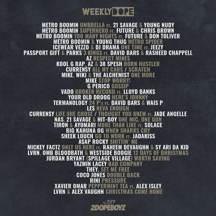 After taking last week off to celebrate some time with the family, we’re back catching you up on the best new music with the 317th installment of our Weekly Dope playlist.